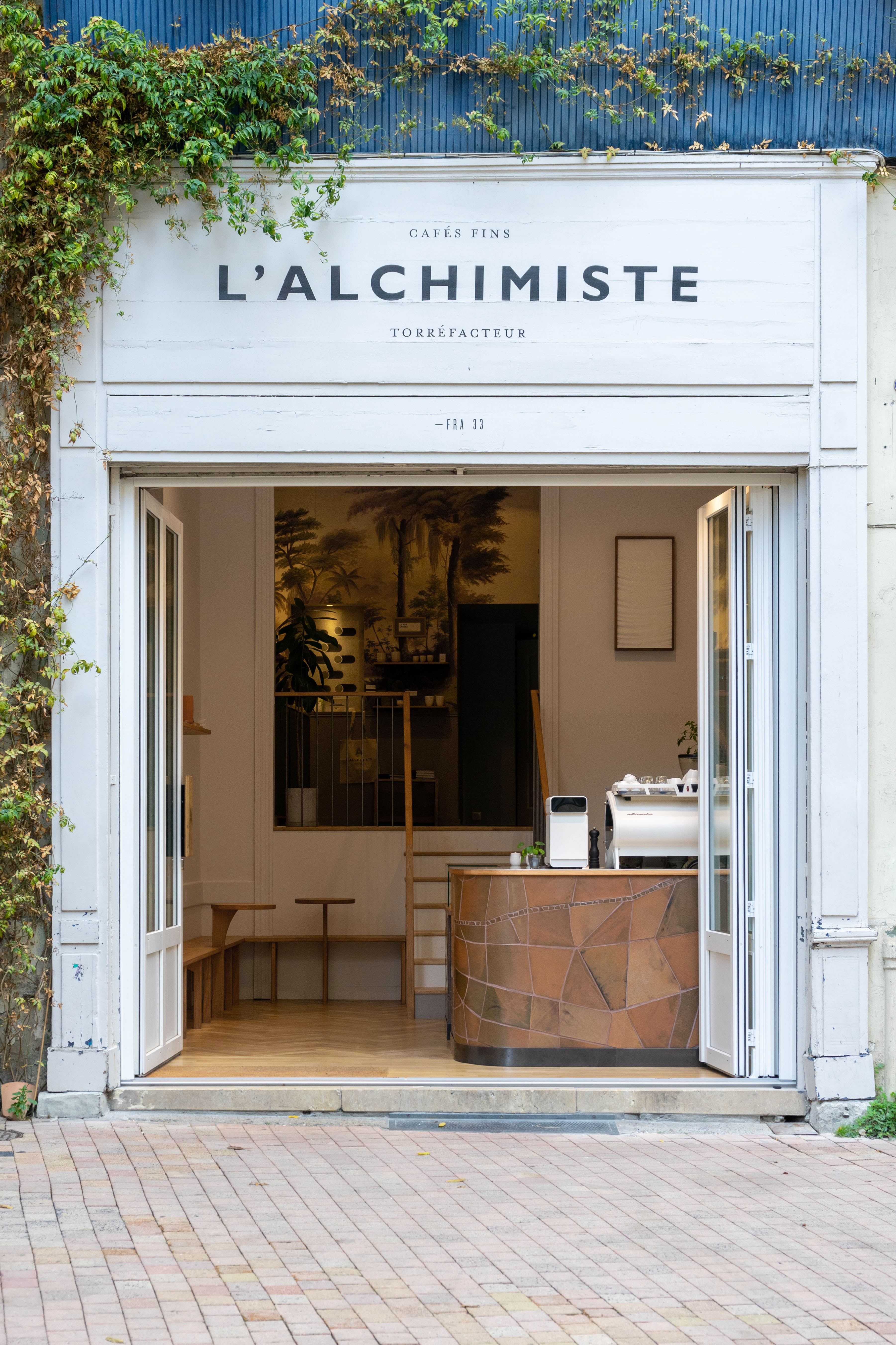 Conception d’une fresque carrelée sur-mesure pour le comptoir de l’Alchimiste, émaillée avec une glaçure céramique haute température locale et frugale, aux limons de l’Estuaire de la Gironde et aux cendres viticoles de l’Entre-deux-mers.